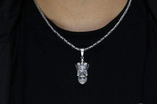 Sterling Silver Skull Necklace, Silver Skull Pendant, Pirate Skull, Silver Byzantine Necklace, Gift for Boyfriend, Haloween gift