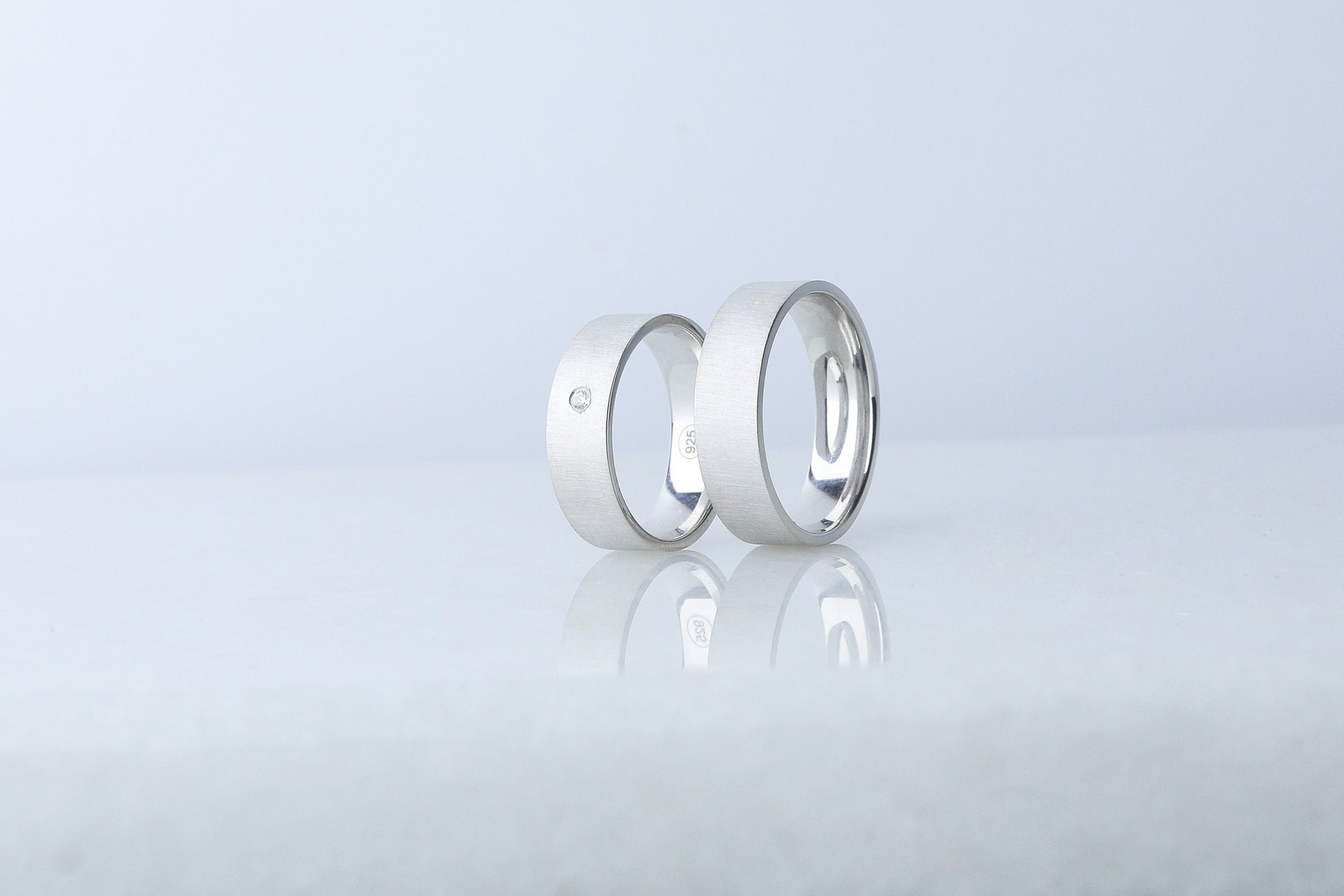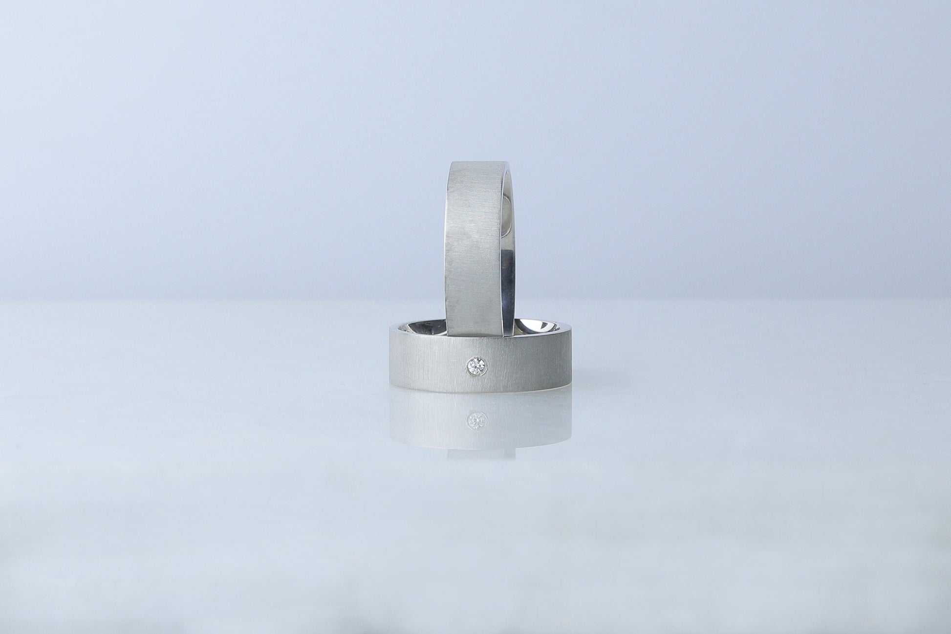 925 Sterling Brused Silver Diamond Simulant Ring, Elegant Brused Silver Ring, Matte Cubic Zirconia Ring with Beveled Edges, Anniversary Gift