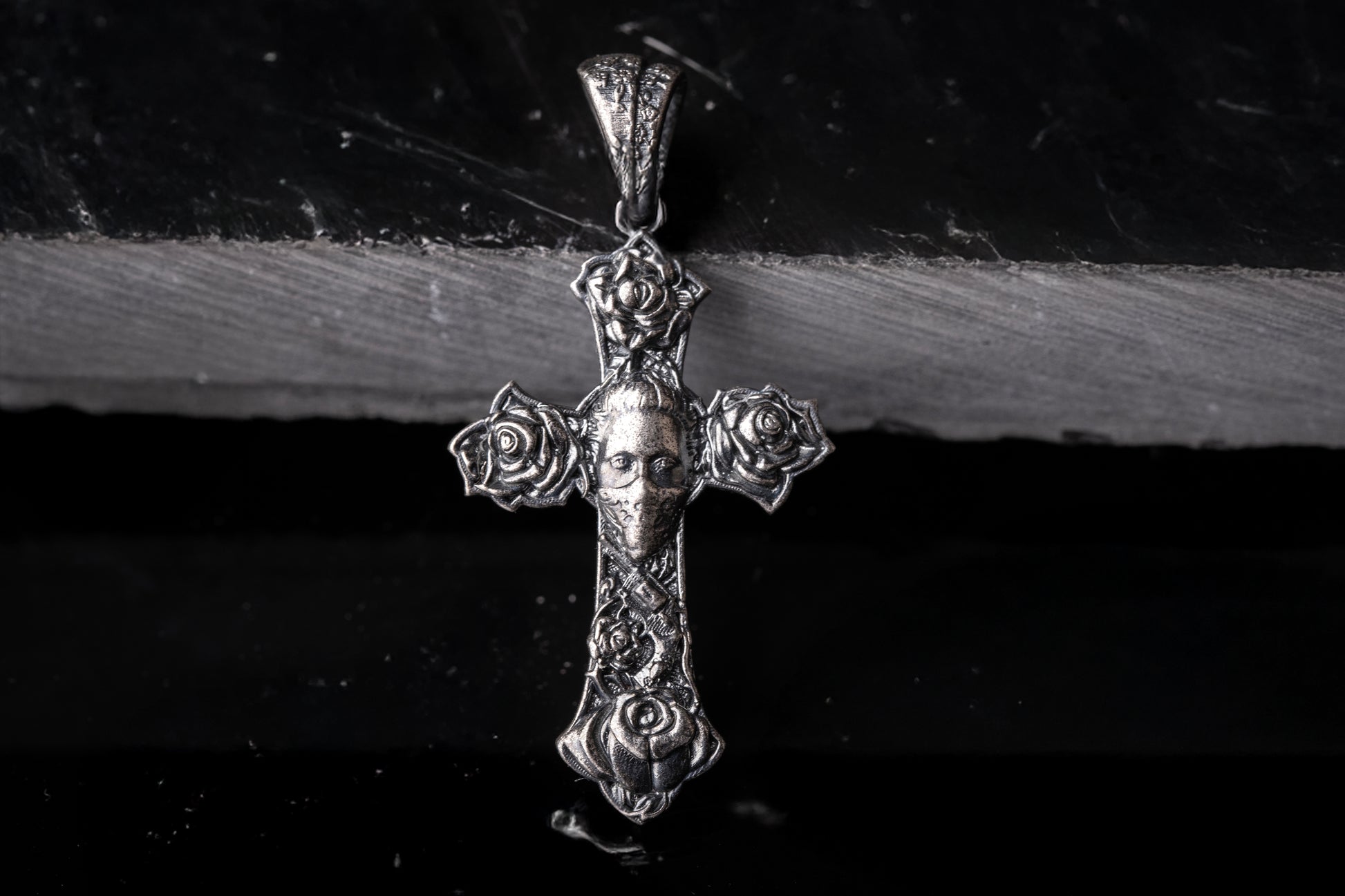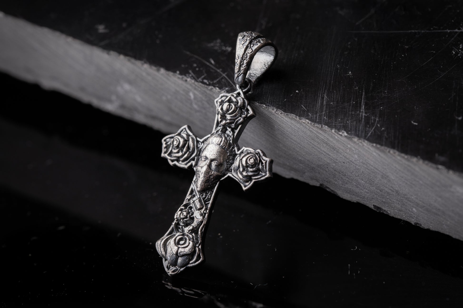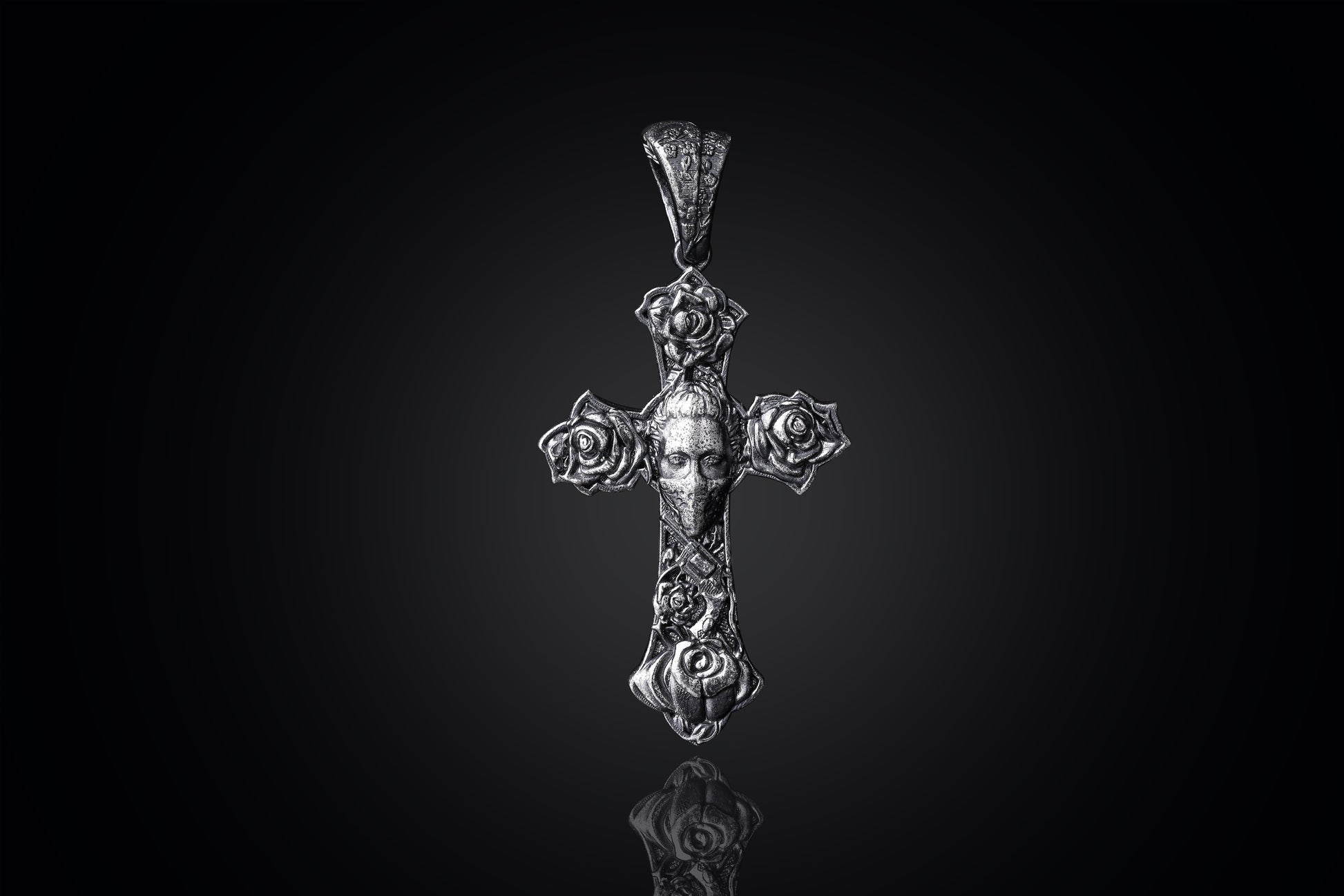 925 Sterling Silver Cross Pendant, Orthodox Cross Necklace, Rose Engraved Charm, Silver Religious Pendant, Engraved Christian Gift