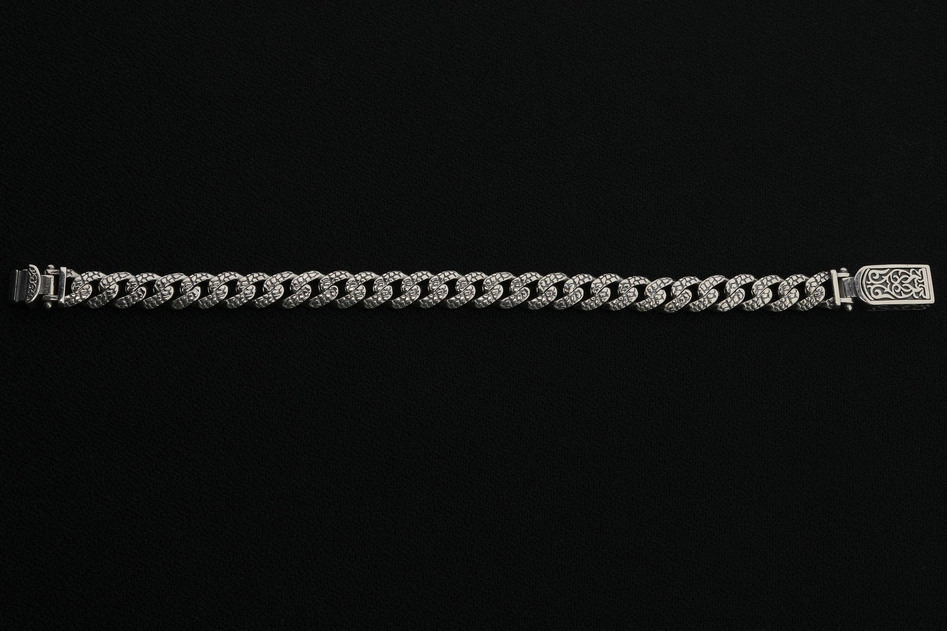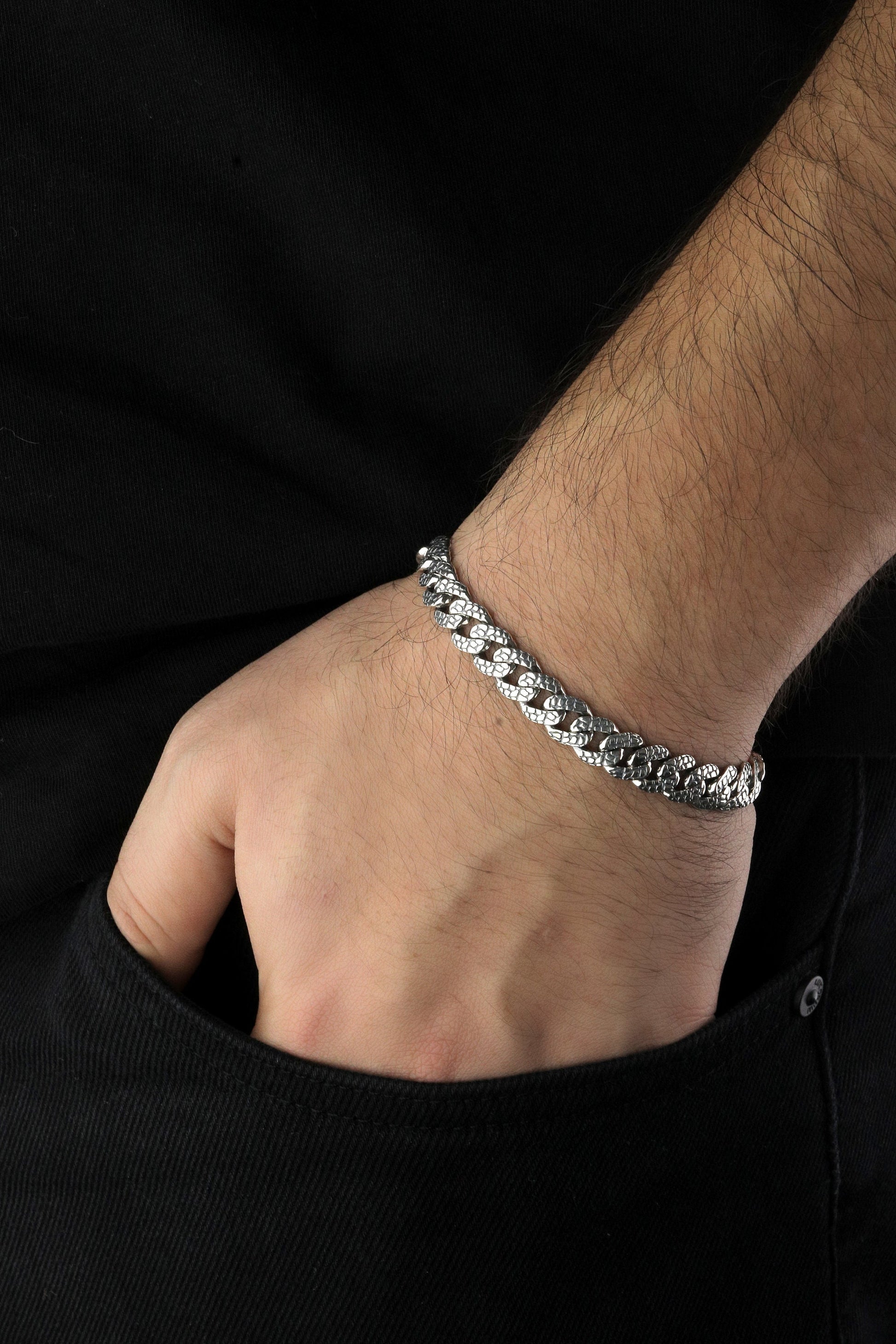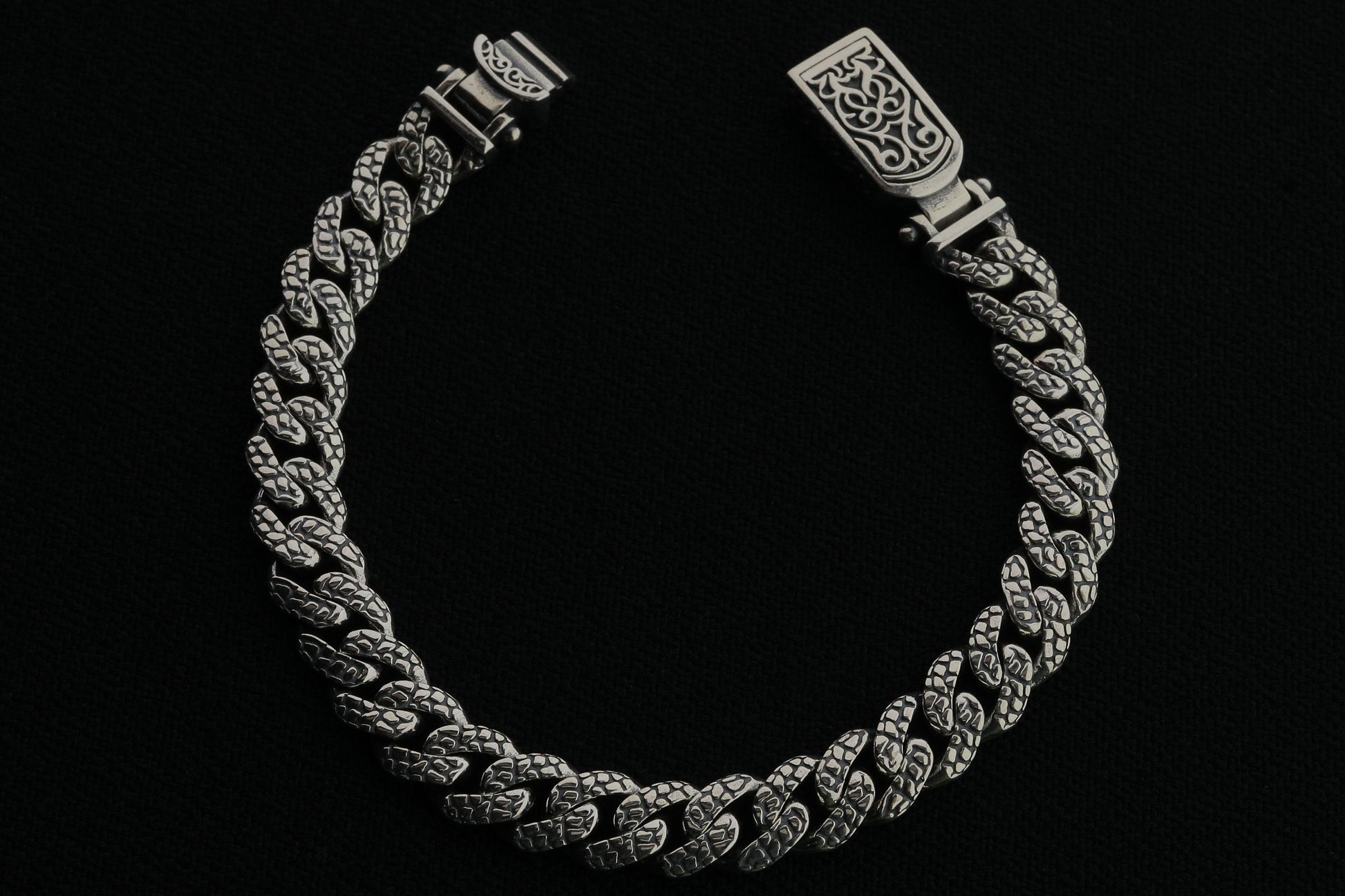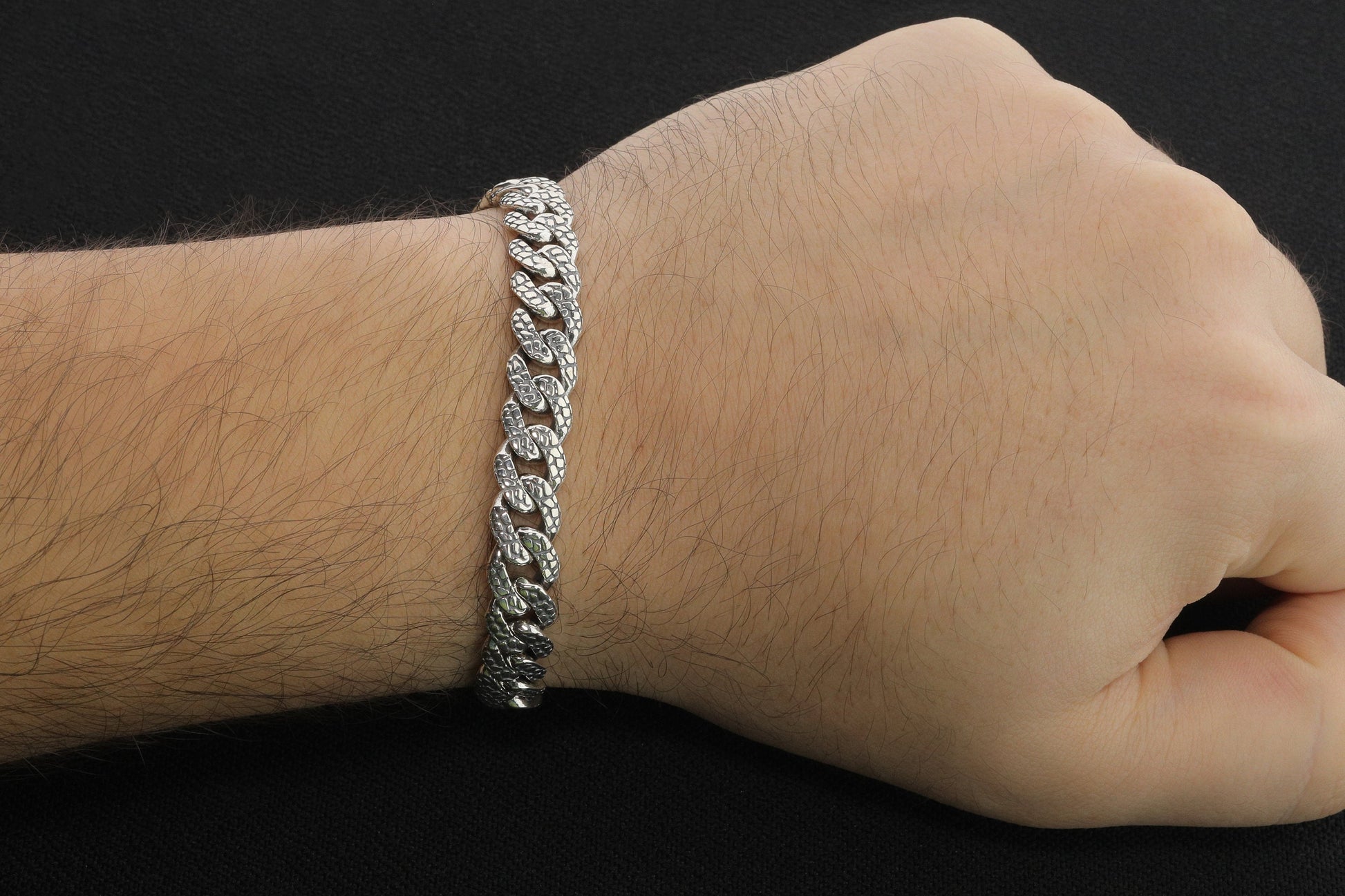 925 Sterling Silver Cuban Bracelet, Rock patterned silver bracelet, 9mm Cuban Link Chain, Handmade Silver Bracelet, Birthday Gift For Her