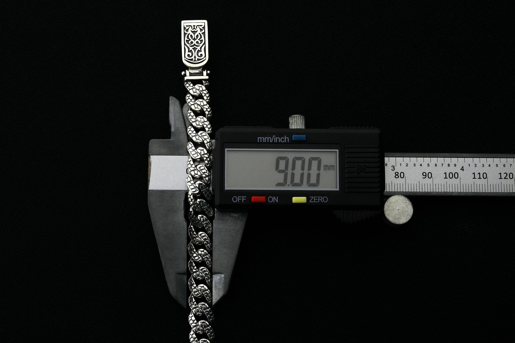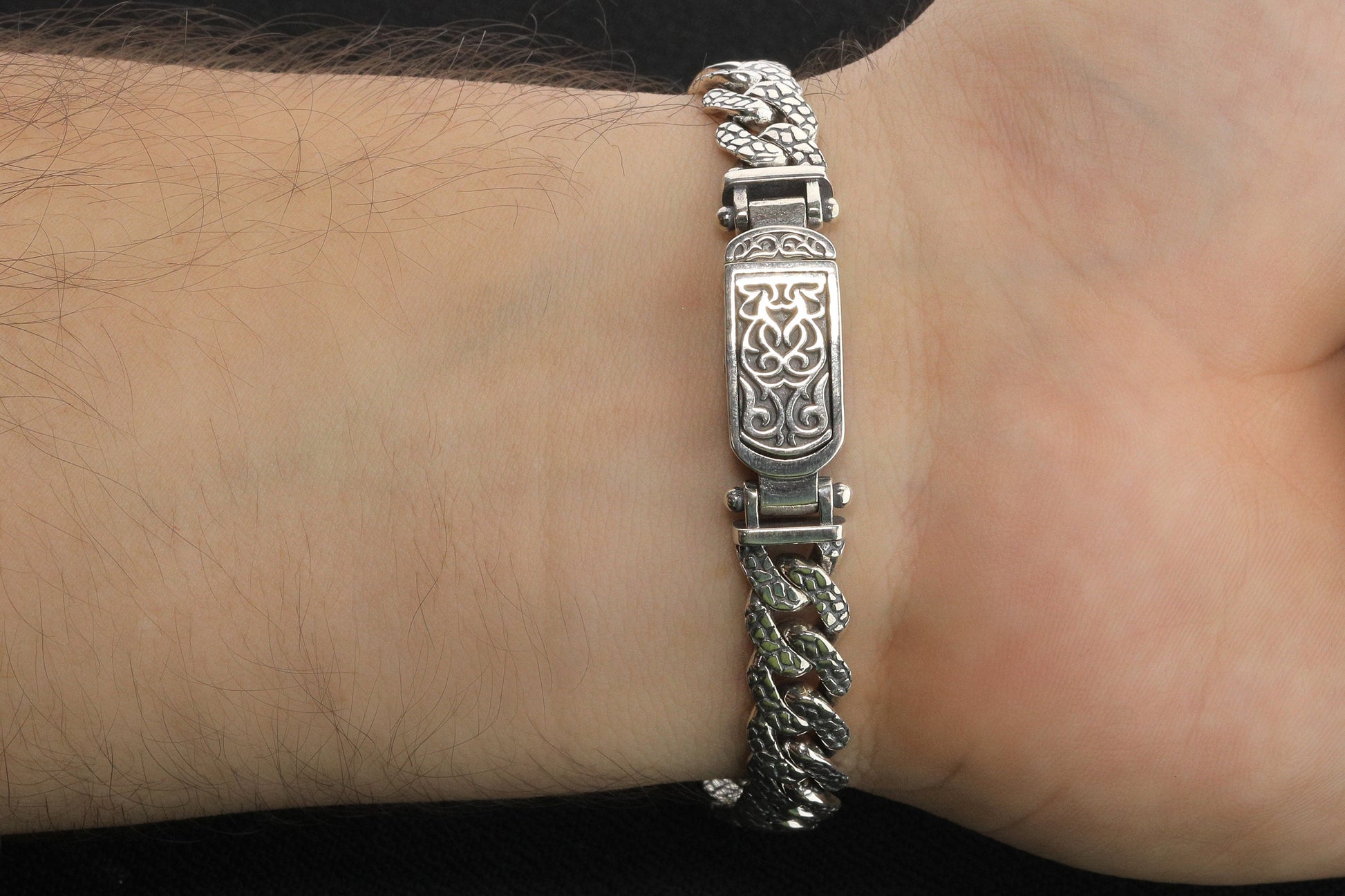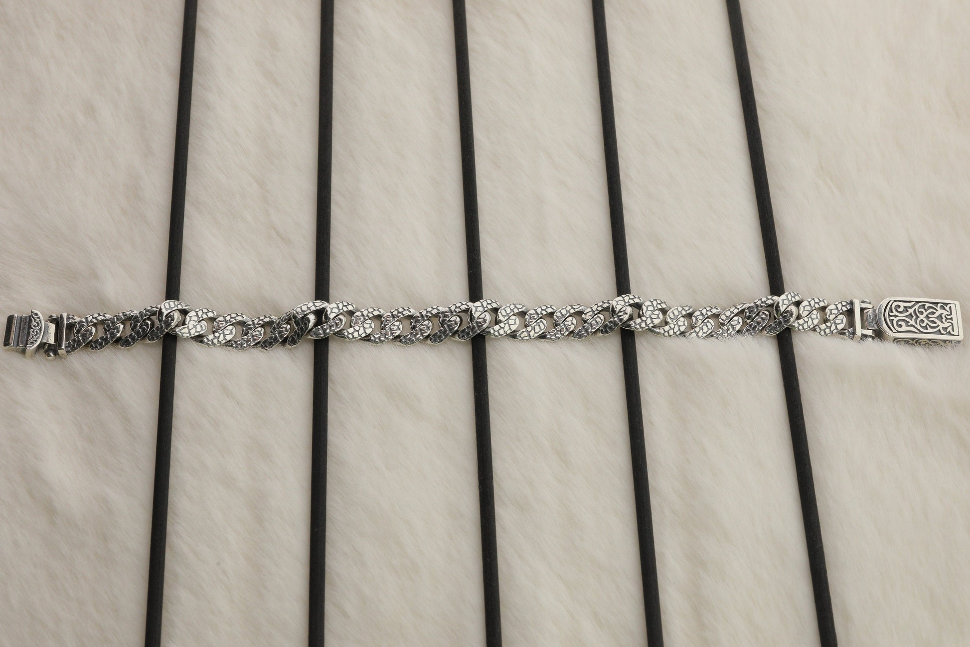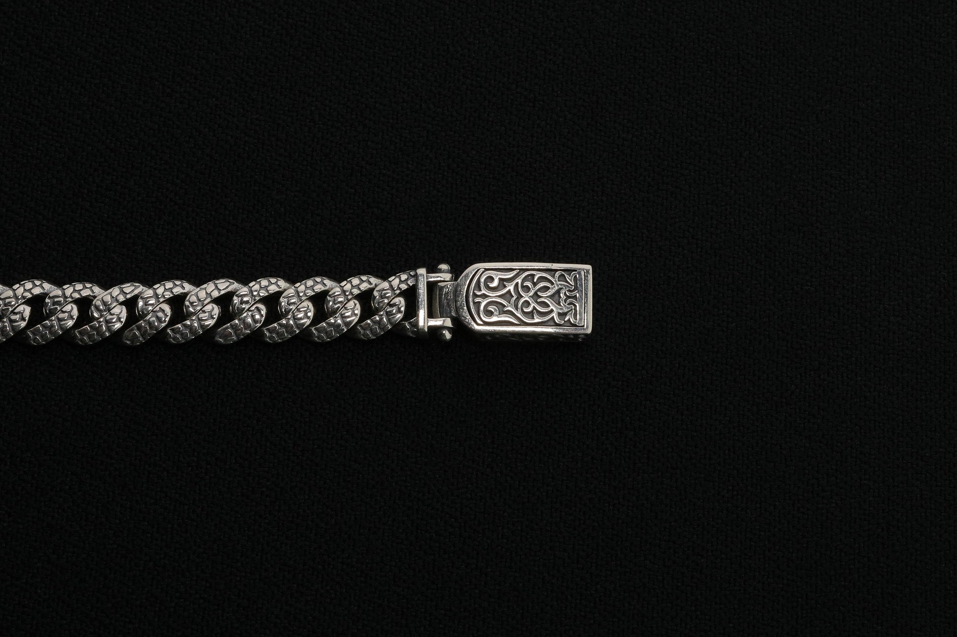 925 Sterling Silver Cuban Bracelet, Rock patterned silver bracelet, 9mm Cuban Link Chain, Handmade Silver Bracelet, Birthday Gift For Her