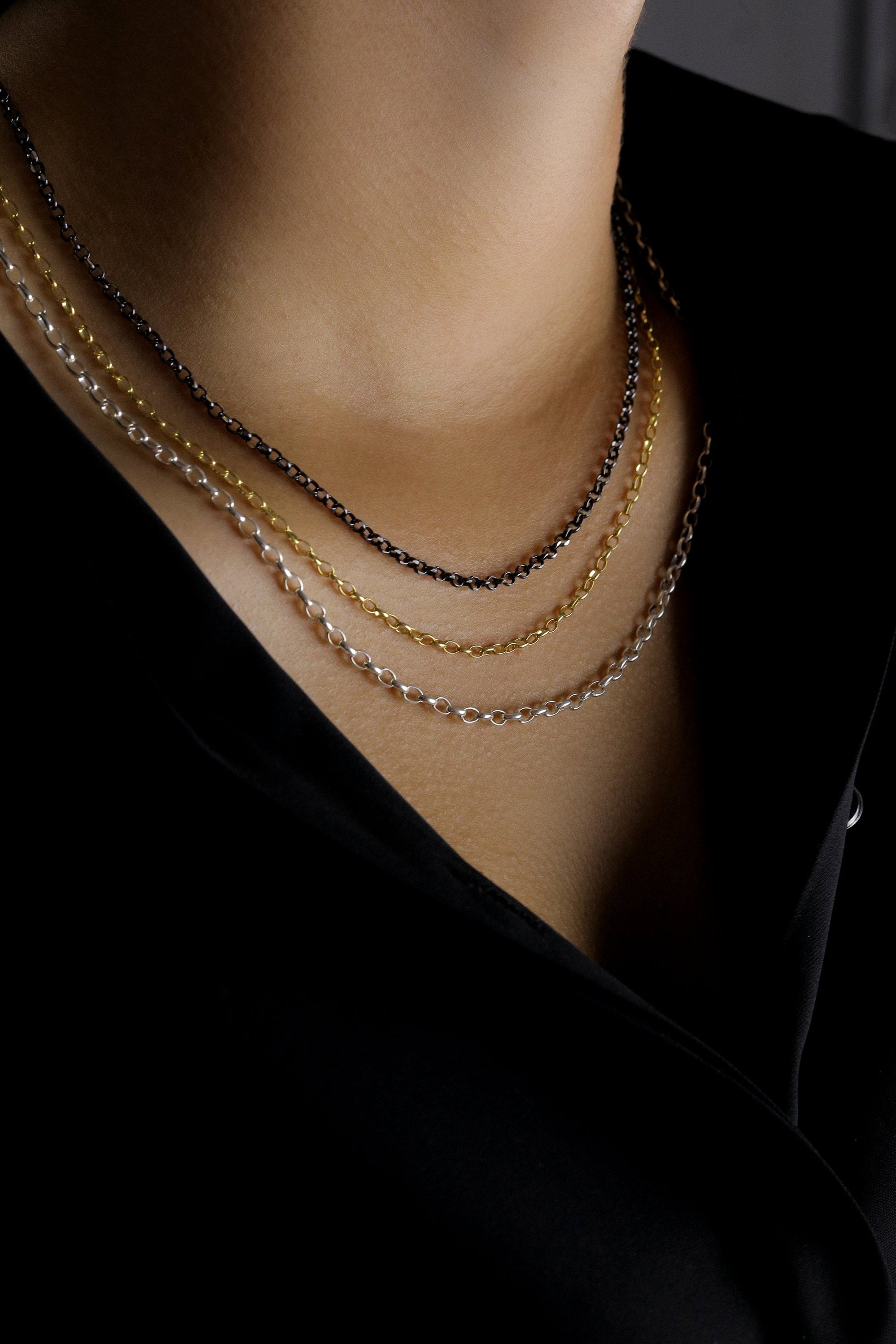 925 Sterling Silver Doc Necklace, Handmade Rolo Doc Chain, Elegant Women's Jewelry, Real Silver Necklace for Men and Women, Gift for Him