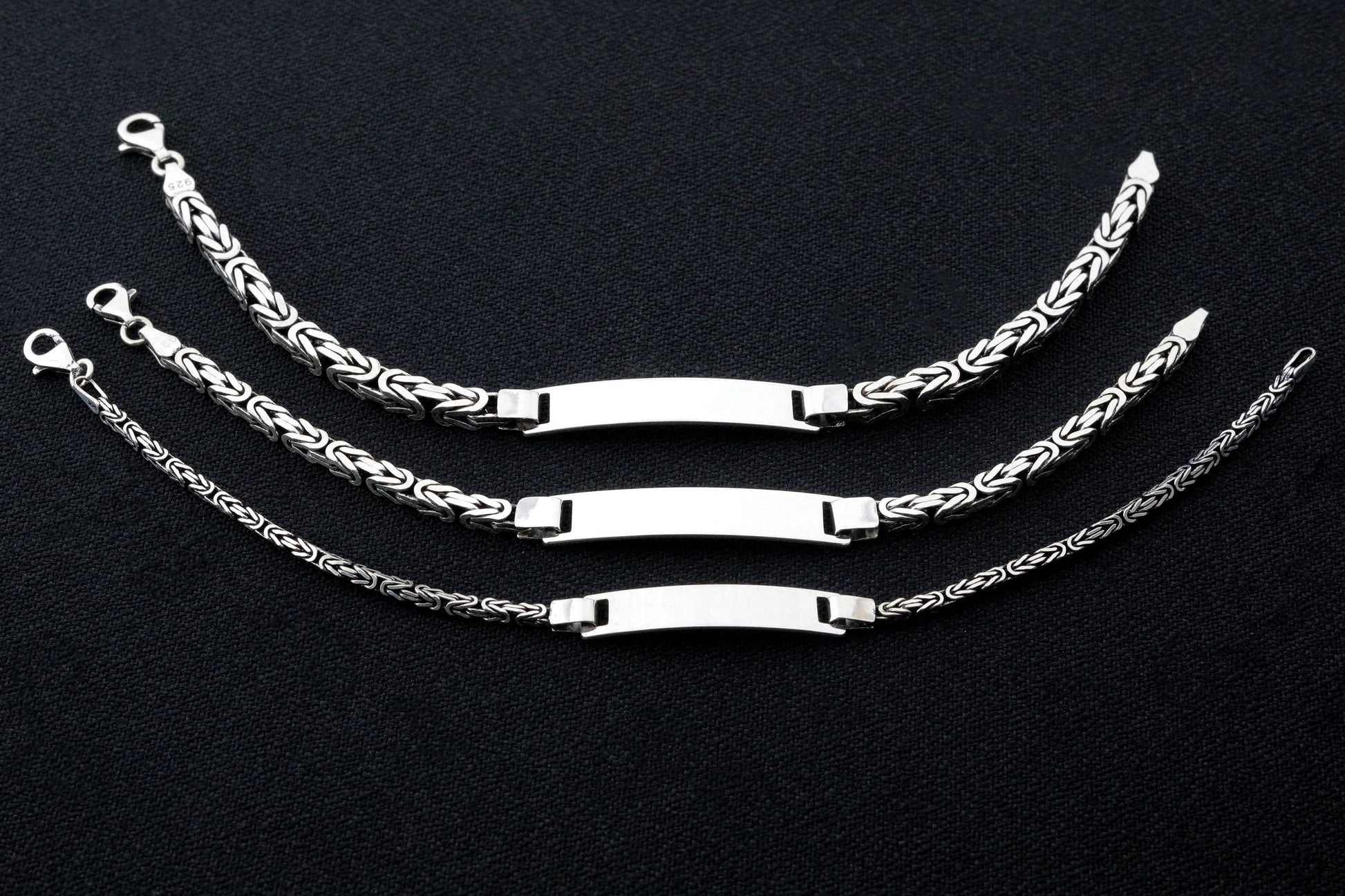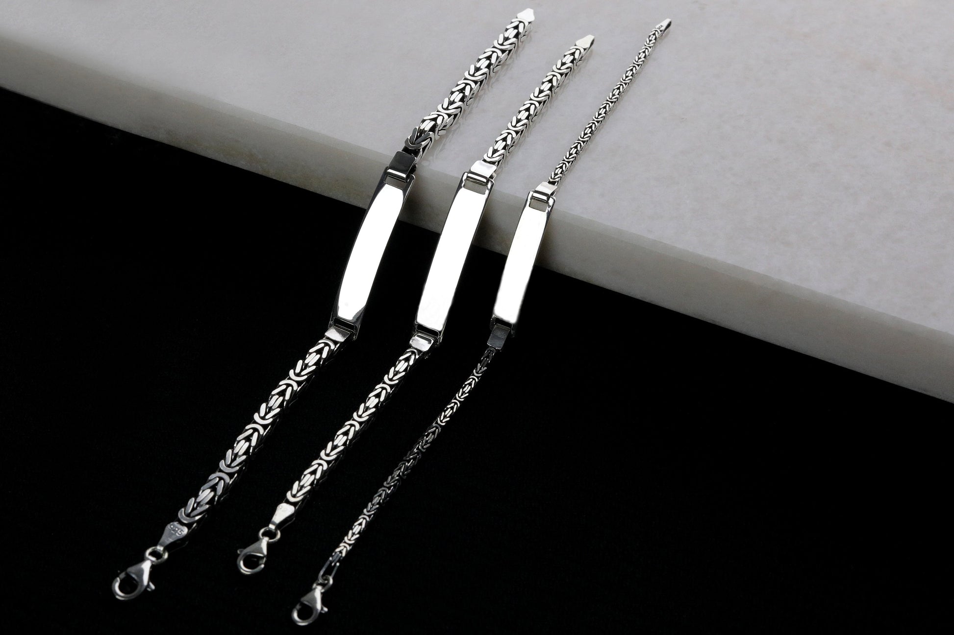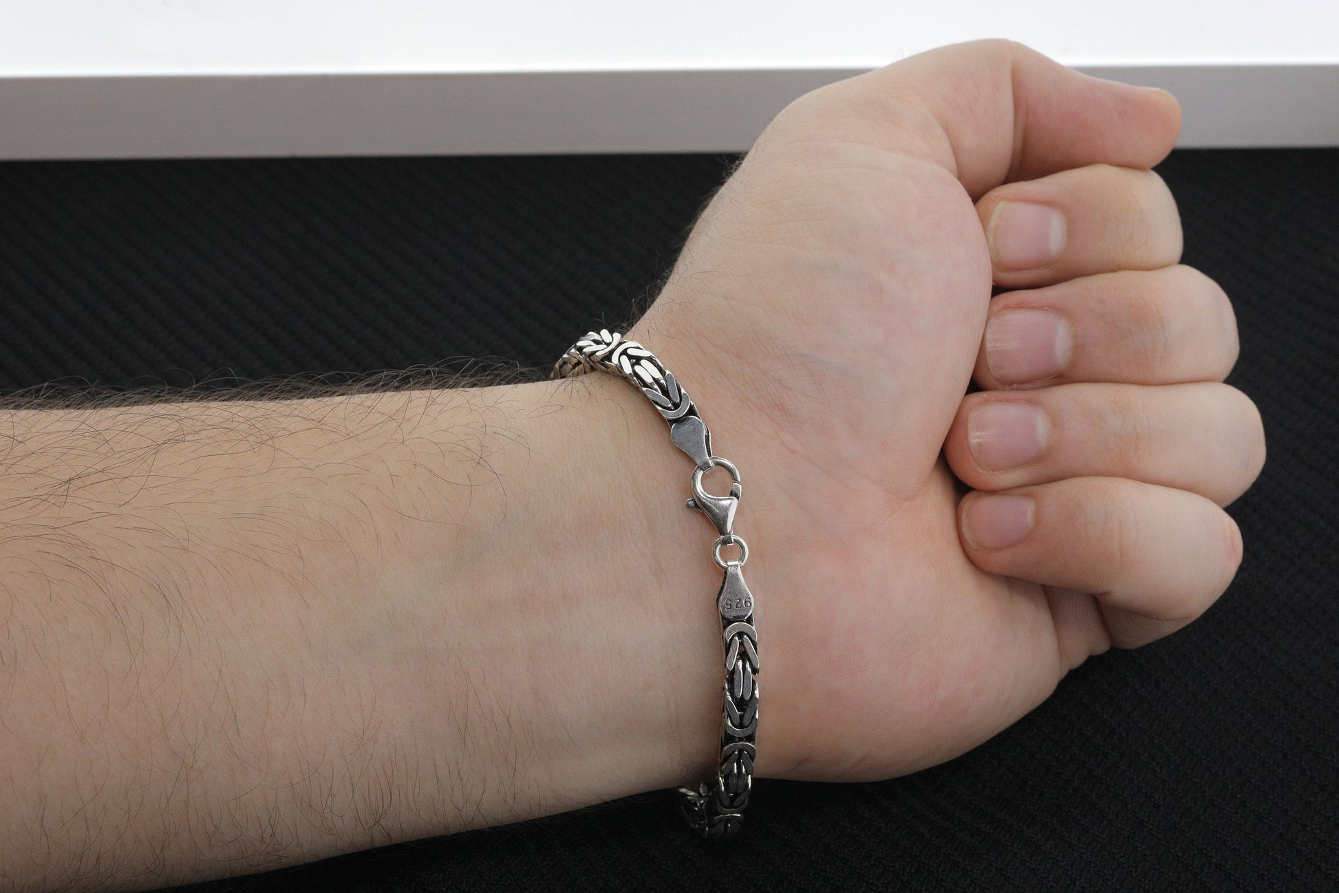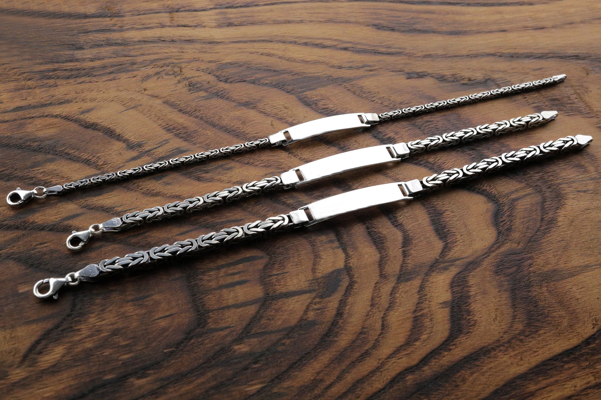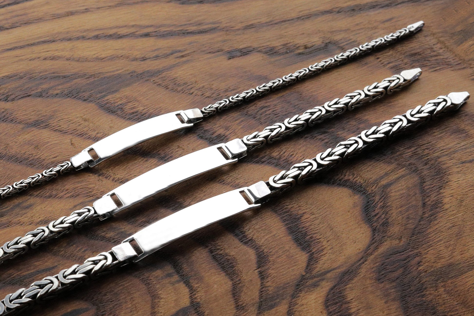 925 Sterling Silver Personalized King Chain Bracelet, Real Silver ID Bracelet, Handmade Square Chain, Minimalist Jewelry for Men,Gift