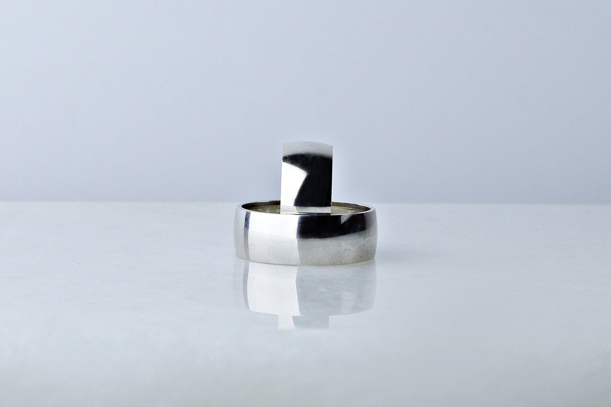 925 Sterling Silver Wedding Domed Ring, Bold Dome Ring for Engagement, Elegant Wedding Bands, Round Classic Silver Ring, Custom Engraving