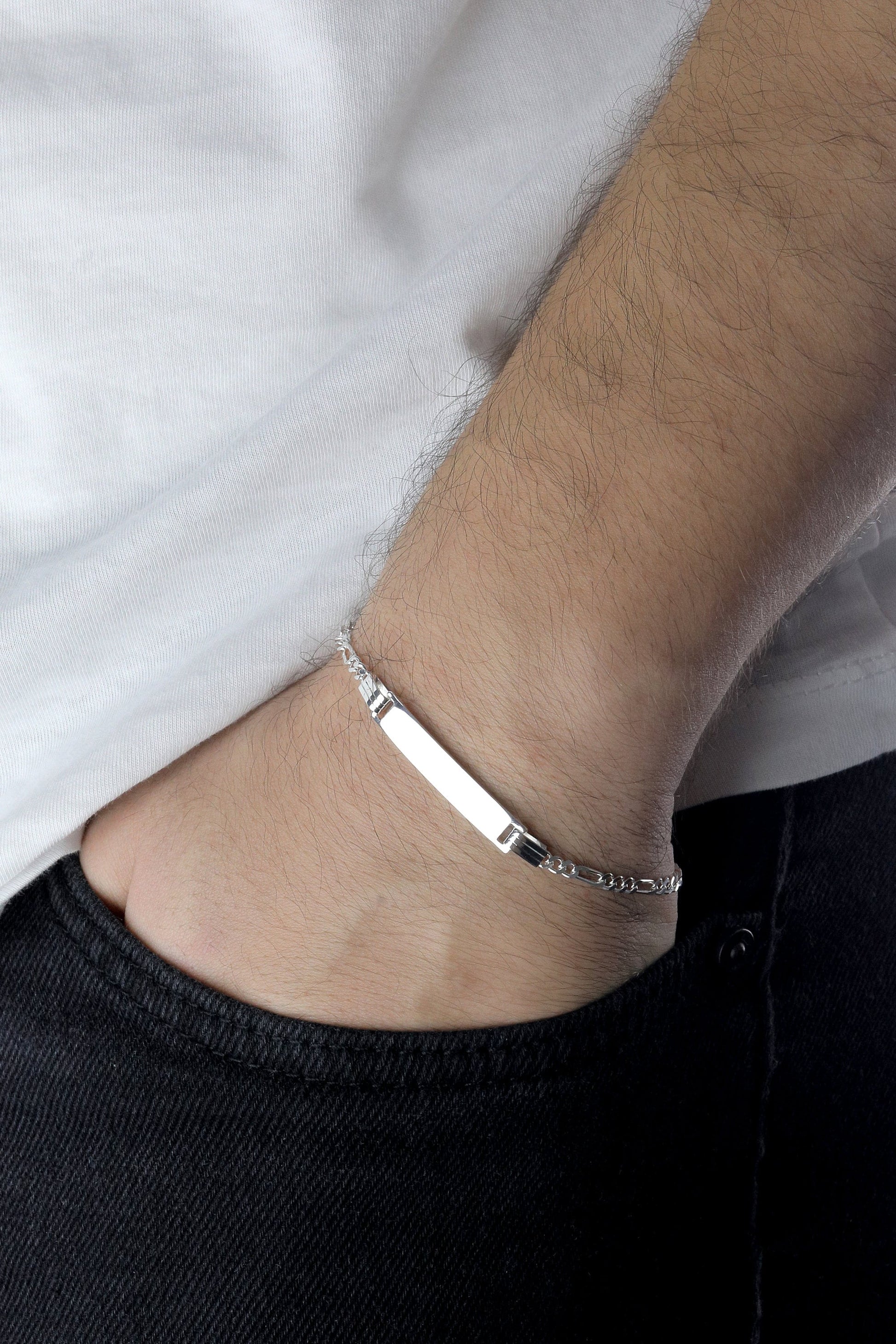 Sterling Silver ID Bracelet, Silver Chain Name Bracelet, Real Silver ID Bracelet for Man and Woman, Gift for Boyfriend, Gift for Girlfriend